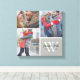 Beautiful personalised canvas wall art print with 3 of your custom family photos arranged in a square grid photo collage with your family name and monogram in the bottom corner along with wedding date or other custom text below. Add your favourite wedding or engagement photos and create a beautiful keepsake canvas art print. Use the design tools to choose any background colour, edit the text fonts and colours and add more photos to create a one of a kind design. Great gift for family, friends, parents and grandparents!