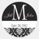 Wedding Monogram Names Date Damask Black White Classic Round Sticker