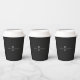 Introducing our Wedding Monogram Paper Cups: Elegant and minimal, featuring a stylish black and white design. These modern, minimalist cups showcase the bride and groom's initials in a chic, sophisticated monogram. Perfect for a monochrome charcoal grey or black wedding theme, these classy cups add a touch of clean simplicity to your event decor.