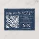 Introduce a touch of sophistication to your wedding planning with our Navy Blue and White Wedding Monogram QR Code RSVP with Photo Elegant Enclosure Card. Combining timeless elegance with modern convenience, this card is the perfect blend of classic charm and contemporary functionality.