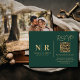 Announce your wedding details with modern elegance using our Emerald Green And Gold Wedding Monogram RSVP QR Code Photo Elegant Enclosure Card. This card combines classic modern script with minimalist design, offering a sophisticated touch to your wedding stationery.