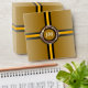 The foil and embossed elements are simulated in the artwork by the Creator. These elements will not be used in the making of this product.