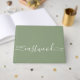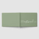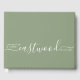 A trendy modern and elegant minimalist couple's name monogram in vintage serif type, contrasted with a handwritten style swash script font on a sage green background. Elegant wedding guest book for newlyweds. Blending vintage and modern styles.