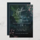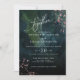 WEDDING INVITATION | Hand painted jaspé in shades of deep ocean blues and greens accented with rose gold nuggets at the corners. Handwritten script calligraphy text on the diagonal "together" at the top allows a warm personal appeal.