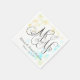 Wedding Napkins - Pastel square beach colour (teal blue and yellow sand) confetti with 'Mr and Mrs' in fancy Script Calligraphy - ready to be personalised with the new bride and groom's married names and wedding date