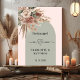 A soft blush pink background, with a sage green coloured arch frame, adorned with muted, earthy roses, eucalyptus greenery, and pampas grass. Mr and Mrs with a heart. Personalise and add your names and wedding date.