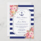 Wedding Nautical Anchor Floral Rose Blue Stripes Invitation