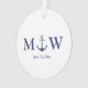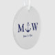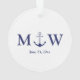 Wedding nautical anchor navy blue and white monogram initials Christmas Ornament