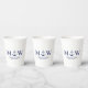 Wedding nautical anchor navy blue and white monogram initials Paper Cups.