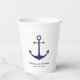 Wedding nautical anchor navy blue and white custom names and date Paper Cups.