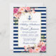 Wedding Nautical Blue Stripes Pink Floral Invite