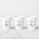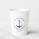 Custom Boat name or Family name, Welcome Aboard, nautical navy blue anchor and text and white wedding Paper Cups.