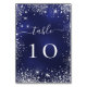 Wedding navy blue glitter table number