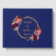A trendy Bohemian boho style Guest Book for your wedding. Decorated with watercolored roses in burgundy and pink. With a faux gold geometric frame. Elegant navy blue background. Templates for your names and a date. The names on front are written with a modern and trendy hand lettered style script. Golden coloured letters.