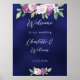 Wedding navy blue violet purple florals welcome poster