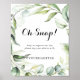 This wedding oh snap watercolor eucalyptus greenery poster is perfect for a rustic wedding or bridal shower. This artistic design features hand-drawn, watercolor eucalyptus green foliage, inspiring natural beauty.