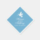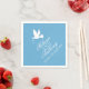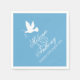 Simple white peace doves with two blue ribbons wedding dinner or wedding party paper napkins A great personal addition to your wedding tables. Personalise with your names. Design and graphic art by Sarah Trett.