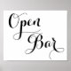 Black and white Open Bar wedding reception sign (poster). Dimensions of the sign print (poster) are 14 inches by 11 inches.