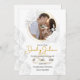BEAUTIFUL INVITATION WITH WHITE ROSES AND PHOTO OF THE BRIDE AND GROOM