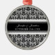 Customisable wedding ornament in elegant and modern black and white classic floral damask pattern. Perfect as a christmas keepsake to remember your special day or celebrate your first christmas or as personalised wedding favours.