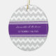 Customisable name and date wedding ornament in elegant and modern charcoal grey, dark purple, and white fun chevron zigzag pattern. Perfect as a christmas keepsake to remember your special day or celebrate your first christmas or as personalised wedding favours.