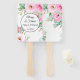 This wedding hand paddle fan is shown in a lovely pink floral watercolor print.