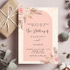 For a modern boho style wedding. An arch frame and rose gold marble print as background. Decorated with rose gold and pink florals, roses and pampas grass. Personalise and add names and details.