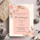 For a modern boho style wedding. An arch frame and rose gold marble print as background. Decorated with rose gold and pink florals, roses and pampas grass. Personalise and add names and details.