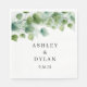 This wedding paper napkin is shown with a eucalyptus vine leaves art print.