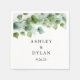 This wedding paper napkin is shown with a eucalyptus vine leaves art print.
