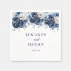 This wedding paper napkin is shown with a lovely deep blue floral mix watercolor print.