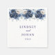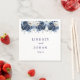 This wedding paper napkin is shown with a lovely deep blue floral mix watercolor print.