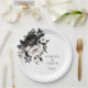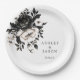 Wedding paper plate is shown with a lovely black and white floral print.