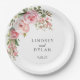 Wedding paper plate is shown with a lovely pink rose floral print.