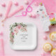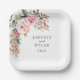 Wedding paper plate is shown with a lovely pink rose floral print.