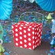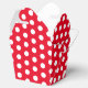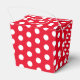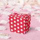 Favour box shown in a red and white polka dots print.