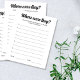 Add a touch of interactive fun to your wedding, engagement party, or bridal shower with our "Where Were They?" Photo Guessing Game Flyers. Featuring a chic black and white design with elegant calligraphy, these flyers invite guests to guess the locations of 9 cherished photos of the couple. Perfect for sparking conversation and creating joyful memories, this game is an engaging addition to any celebration. Pair these cards with our matching "Where Were They?" poster, showcasing 9 photos of the couple, for a seamless and stylish look. Easy to set up and play, this game enhances the festive atmosphere while celebrating the couple’s journey together. Ideal for weddings, engagement parties, and bridal showers, our photo guessing game cards and poster set is a must-have for making your special day truly unforgettable. Create lasting memories and delight your guests with this unique game!
