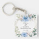 Wedding Keychain | Watercolor peony flowers in shades of sky blue with alabaster white magnolias and eucalyptus greenery - a gold geometric multi faceted terrarium style frame adorned with floral bouquets. Original artwork created for the BarefootBride™ by © WhimsicalArtwork™ - This is part of a complete Wedding Stationery Suite with matching wedding, baby shower and other event stationery.