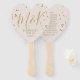 Add your wedding party details to these pretty bridal blush pink wedding paddle hand fans with gold confetti sprinkles