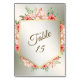 Wedding Party Peach Orange Floral Golden Rustic Table Number