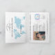 Modern and Elegant World Map Invitation Wedding Destination, like passport with a dusty blue watercolor floral crest monogram