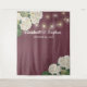 Wedding Photo Booth Backdrop Templates - Elegant White lovely Watercolor Hydrangea Flowers and String Lights on Burgundy Red Background.