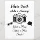Black and white camera photo booth sign. Make a memory, grab a prop and strike a pose! Wedding sign.