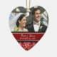 Winter Wedding photo ornament customisable with your own wedding photo and wedding date in elegant red, black and white with classic floral damask pattern. A stylish christmas gift for family and friends or to decorate your christmas tree or home for the holidays. The perfect way to remember your winter wedding day.