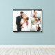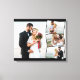 Create your own unique wedding photo wrapped canvas. The photo template is set up ready for you to add 4 of your favourite pictures which will automatically display as one main background photo in landscape format, with the remaining 3 photos overlaid in a zigzag montage. The design has narrow black photo frames and a black border.