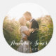 Wedding Photo Modern Whimsical Script Classic Round Sticker