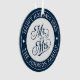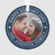 Surrounding both sides is a curved typography design on a rich navy blue background, with the phrase “happy holidays” and family name gracefully integrated into the ornament. This piece serves as a delightful keepsake, perfect for commemorating special moments such as your first Christmas as a married couple, milestone anniversaries like the 50th, or as a heartfelt gift for parents celebrating their enduring love.