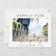 Budget-friendly light cream elopement or private wedding announcement and reception or celebration party invitation. The front features your photo and "Happily Ever After Party" in a mix of simple typography and a stylish script with swashes, your first names and wedding date. On the reverse you can personalise your message and invitation in more detail, create a QR code linked to your wedding website for your guests to scan for more information and add your names in a signature-like script.