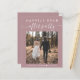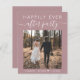 Budget-friendly dusty rose elopement or small wedding announcement and reception invitation. The front features your photo and "Happily Ever After Party" in a mix of simple white typography and stylish white script with swashes. Under your photo, add your first names and wedding date. On the back, personalise your wedding announcement and reception invitation in more detail, input your wedding website URL address to create a QR code for guests to scan to see your wedding photos, all the details and to RSVP online, and add your names in a signature-like script.