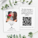 Capture and cherish your wedding day memories with this elegantly designed Wedding Photo Share QR Code Card. Perfect for modern celebrations, this enclosure card combines style and functionality with a sophisticated black-and-white minimalist aesthetic. Featuring space for a custom engagement photo, your guests can easily upload photos from your special day by simply scanning the QR code or visiting your personalised website. Customise the card with your names, wedding date, and a scannable QR code tailored to your event. Ideal for preserving heartfelt memories and creating a seamless experience for your guests.